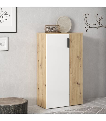 This versatile storage cabinet brings both functionality and style to your home. Its two-door design offers ample interior space for storing books, household items, or any clutter you want neatly hidden. The natural wood finish provides a warm and elegant aesthetic that fits seamlessly into any room, whether it’s a living area, bedroom, or hallway. The sturdy construction ensures durability, while the flat top surface is perfect for showcasing decorative items like vases, artwork, or family photos. Its compact size makes it an ideal choice for maximizing storage without compromising on style. Latitude Run Finish: White/Oak Wood ...
