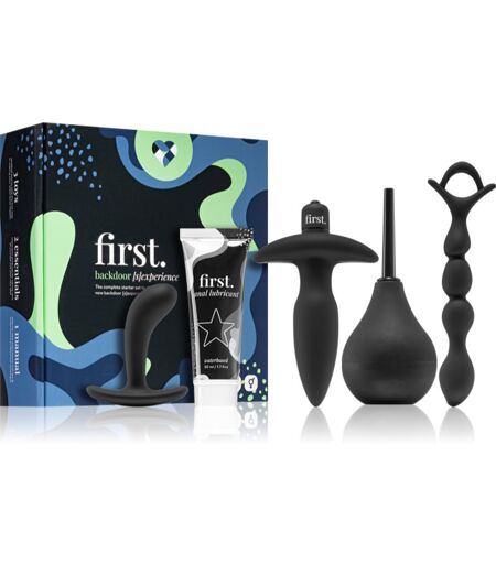 LoveBoxxx First Backdoor (S)Experience Starter, 5 pc, Anal vibrators unisex, Characteristics: ideal as a gift easy to keep clean suitable for beginners The set contains: butt plug 7,5 cm butt plug vibrating 13,3 cm anal douche 13,5 cm lubricant gel 50 ml anal beads 16,8 cm How to use: Follow the instructions provided. ...