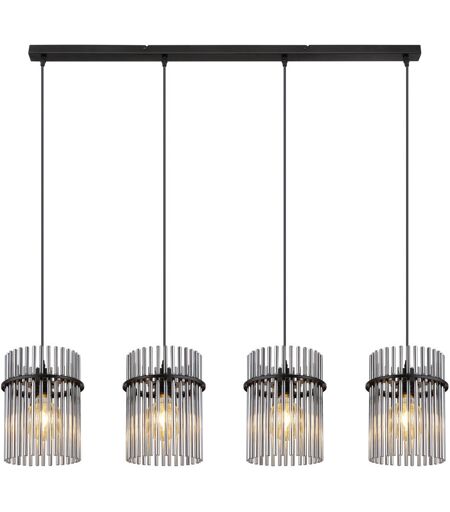 Gold -colored metal pendant, opal glass rods, clear gradient, black PVC cable, height can be shortened, LxWxH: 1100x200x1400mm, excludes 4x E27 60W 230V Globo Lighting Shade Colour: Smoke colour ...