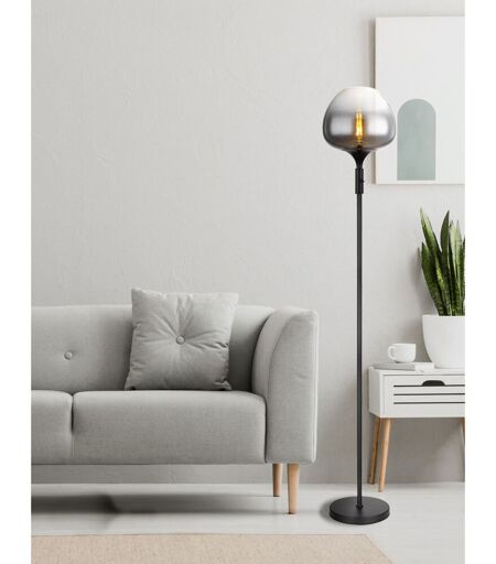metal floor lamp, chrome metal, copper-colored glass, clear gradient, textile cable, rocker switch on the item, diameter: 290mm, height: 1650mm, cable length 1800mm, does not include 1 x E27 40W 230V Globo Lighting Base Finish: Black, Shade Colour: Grey ...