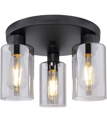 Ceiling light metal black matt, glass smoke colored, diameter: 340mm, height: 220mm, excludes 3x E27 60W 230V Globo Lighting ...