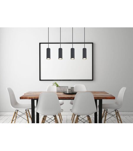Pendant light metal, wood look, dark metal, PVC cable, LxWxH: 650x60x1200mm, excludes 4x GU10 35W 230V Globo Lighting Shade Colour: Black matt ...