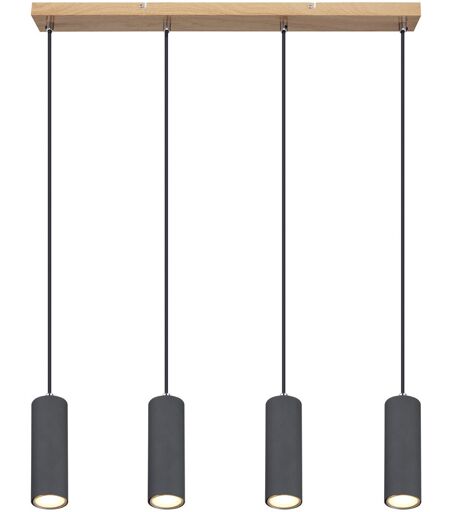 Pendant light metal, wood look, dark metal, PVC cable, LxWxH: 650x60x1200mm, excludes 4x GU10 35W 230V Globo Lighting Shade Colour: Graphite details ...