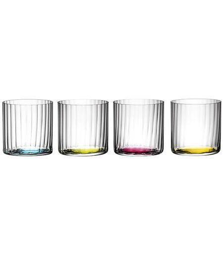 The Riedel Happy H20 Set Of 4 Optic O Tumblers are perfect for serving a variety of drinks like water, juice, cocktails and refreshing summer drinks. The shape of the tumblers in this attractive set of 4 alongside the coloured bases all create an optically pleasing light affect. Made from crystal glass and dishwasher safe for easy and convenient cleaning. Capacity: 330ml. Dimensions: 8cm height, 8cm diameter. ...