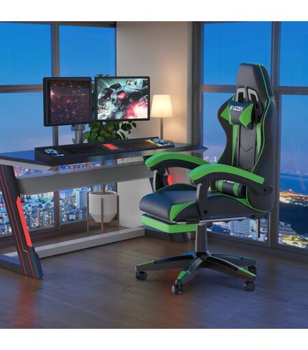 zoow Reclining Game Chair With Footrest Black/Green 120cm H X 50cm W X 50cm D
