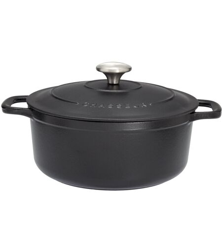 Cast Iron Round Casserole with Lid design incorporates larger, more ergonomic handles for safer lifting, a more rounded, sensual base for easier use, and a re-designed lid that highlights the brand and its French origin and finally, stainless steel lid knob as standard. Symple Stuff Colour: Matt Black, Capacity: 1.8L ...