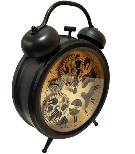 Add vintage style with a modern twist to your desk with this amazing mantle clock. Featuring faux alarm bells on top, powered by a quartz mechanism with metal hands. An intricate cut-out face reveals multiple moving cogs, creating a mesmerizing flow. Two battery compartments power the clock, so should you wish to have the cogs non-moving, this is also an option. Borough Wharf ...