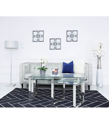 Ivy Bronx Shamir Nest of Tables for Living Room Furniture, Metal and Glass Coffee Table & Side Table Silver 50cm H X 120cm W X 60cm D