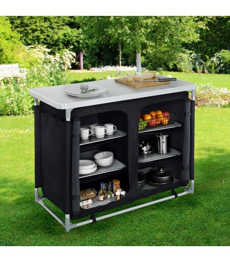 This stable camping kitchen is a space-saving wonder. This handy camping storage unit will help to make your outdoor camp complete and will become almost as important as the tent itself. Easy to assemble, extremely compact once folded: this collapsible camping kitchen is ideal for any outdoor use. Dakota Fields Table Base Colour: Black ...