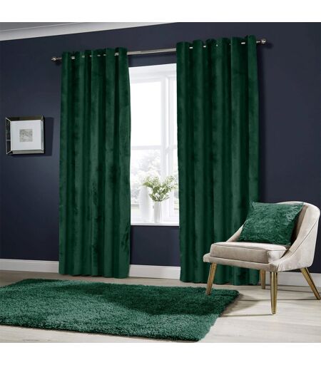 Fairmont Park Winkel Heavy Velvet Eyelet Ready Made Thermal Drapes & Curtains Green Emerald 228 x 228cm