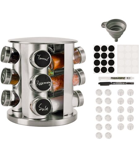 Belfry Kitchen Free-Standing 12-Jar Spice Rack Silver 21.5cm H X 18.5cm W X 18.5cm D