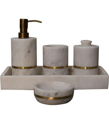 This 5-piece round bathroom set is made from white marble adorned with a brass band. Consists of a soap dish, soap dispenser, toothbrush holder, cosmetic box holder, and tray. A beautiful set of accessories for your bath as well as making a unique gift choice. Canora Grey ...