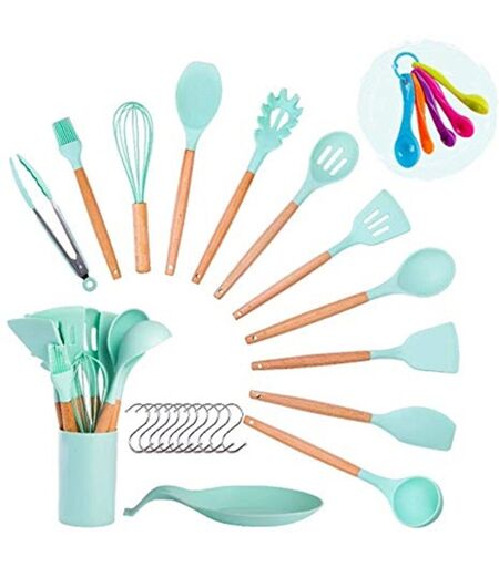 Belfry Kitchen Cooking Utensils Set, Kitchen Utensils Set, Including Measuring Spoon Set, Placing Mat Green