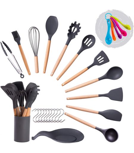Belfry Kitchen Cooking Utensils Set, Kitchen Utensils Set, Including Measuring Spoon Set, Placing Mat Night Grey