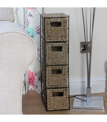 17 Stories Bacote Seagrass Woven 4 Drawer Storage Tower Unit For Home, Office Furniture Basket Shelf Brown 25cm H X 9cm W X 6cm D