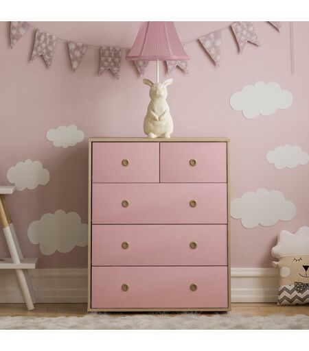 17 Stories Kayshia 5 Drawer Chest Pink/Oak 76cm H