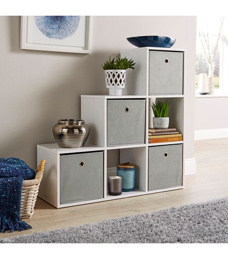 This bookcase has a clever design that is perfect for under the stairs. It has an eye-catching design that appeals to our sense of both order and progression. The first column has 1 cube, the next has 2 and the final one has 3. It is a great way to use the space under the stairs or to have it as a room divider especially as it has an open back. So you can spin it around so that it slopes to the left or the right plus you can access items from both sides, or admire them if you are using it to display ornaments and figurines, etc. Featuring strong, durable 15mm board - this sturdy unit is designed to last! For your bathroom and bedroom, lounge or dining room, kitchen or hallway, conservatory or home office, just put items directly on the shelves. Or if you choose to have it with the slot-in canvas storage cube boxes, you can fill them with anything from paperwork and office supplies, to beauty and hair care items, accessories clothes and shoes, towels and bedding, etc. Plus, the shape is great for placing items on the top too. Ebern Designs Colour: White ...