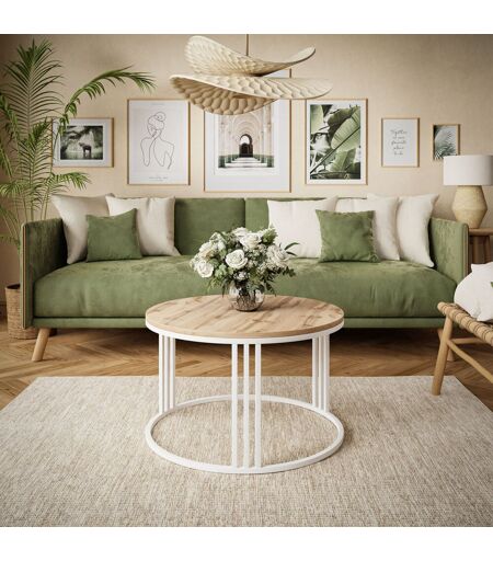 Daniel Burnham has a round shape that gives it a unique aesthetic and makes it the perfect focal point of a living room, boardroom, or other room. Thanks to its multifunctionality, it can be used in a variety of ways. It can serve as a central meeting place for family and friends, as the perfect place to relax with a cup of coffee, or as an elegant decorative element in a room. Borough Wharf Table Top Colour: Wotan Oak, Table Base Colour: White ...
