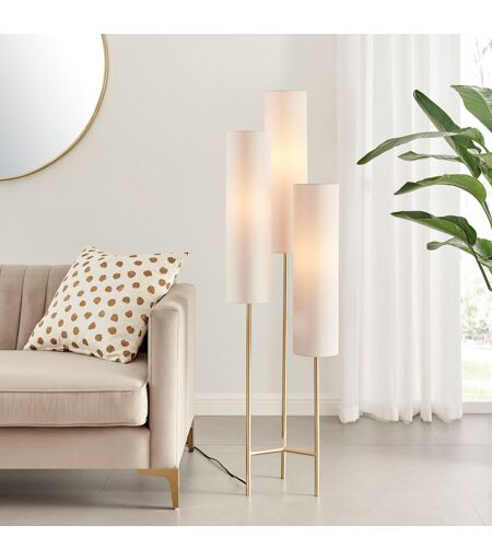 Our Analyssia triple floor lamp has 3 off white fabric lamp shades and brass gold-brass accents to create a cluster-like effect. It'll add some soft statement lighting to your living room, bedroom or anywhere that needs a little extra glam glow. We love that the Suri takes inspiration from retro vintage lighting styles from the 1960s and has some Art Deco flair too, but is kept modern and fresh with its sleek straight lines and simple shape. The staggered three tier shades with really bounce the light around and the cylindrical white fabric lamp shades will diffuse the light beautifully. The Analyssia standing lamp will look fab in a range of home styles, from maximalist to minimalist, glam to boho. Comes with a black corded power cable, and foot-button switch and requires 3x 18W E14 bulb (not included). Check out our full lighting range for more ideas. Canora Grey ...