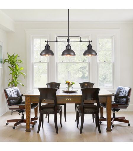 Crafted from long-lasting metal with an industrial black finish, this 3-light kitchen island linear pendant showcases a pot lid outlook, three industrial dome shades are attached with a straight arm and hung by a rod that provides a minimalist modern industrial vibe to your space. Longshore Tides ...