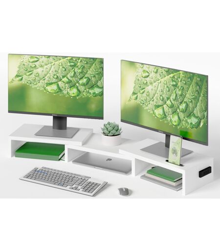 Inbox Zero Dual Monitor Stand Riser, Desktop Monitor Stand With Smartphone Holder, Adjustable Length & Swivel Angle Wooden Desktop Organizer Stand Pc Riser For P White 10.4cm H X 80cm W X 23.6cm D