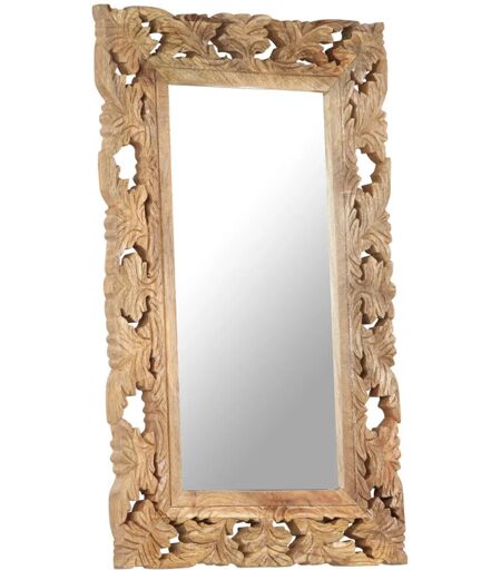 This solid mango wood mirror is more than a practical day-to-day object, it is also an attractive decoration for your home. Solid mango wood is a tropical hardwood. It has the strength to bear the weight, and also stands the wear and tear of time. Additionally, the exquisite craftsmanship and beautiful wood grains make every piece of wooden mirrors slightly different from the next. The hand-carved pattern adds to the mirror's beauty. Important note: The colours and grains of the wood may vary from piece to piece, making each piece unique and slightly different from the next. The delivery is random, ensuring the exclusivity and individuality of your product. Marlow Home Co. Finish: Brown, Size: 80cm H x 50cm W ...