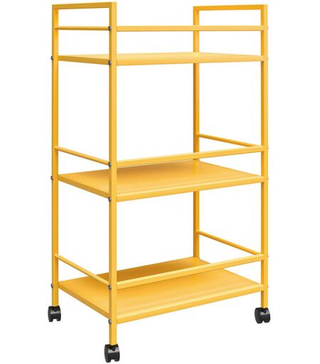 Use the Cart anywhere you need to add storage space. The blue finish on the powdercoated metal adds a fun pop of color and can easily be cleaned by wiping with a damp cloth. Three large shelves with wraparound bars on 3 sides allows you to organize glasses toiletry items craft supplies and or make the Cart into a fun coffee bar. The rolling casters make it easy to move the Cart where ever you need and 2 casters lock to keep the Cart in place. The Cart ships flat to your door and 2 adults are recommended to assemble. Each shelf can hold up to 20 lbs. 17 Stories Finish: Yellow ...