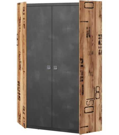 Borough Wharf Argonaut 2 Door Wardrobe Oak/Raw steel 191cm H X 97cm W X 97cm D