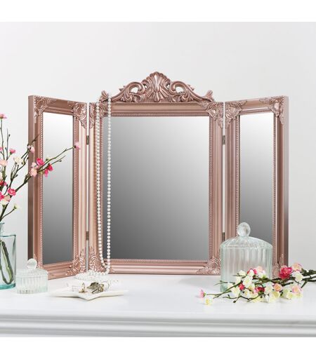 This dresser mirror would make an excellent tabletop mirror choice for a dressing table, bathroom vanity or console table. Made from resin, this mirror has a painted finish and ornate vintage French style, baroque-inspired detailing on the top and sides as well as beading style detailing around the edge of the mirror. This beautiful, glamorous mirror is ideal for those with vintage, modern or traditional style interior decor themes. This mirror has a free-standing, tabletop design and can be placed in a variety of rooms. The perfect mirror for beauty enthusiasts, this has a triple mirror design so you apply your make up or style your hair from a variety of angles. A great decor option for a bedroom, bathroom or living room space. Astoria Grand Finish: Pink ...