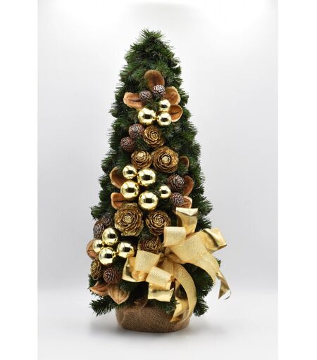 This beautiful handmade Christmas tree in a cone shape and featuring golden decorations brings a Christmassy feeling into any home. It will enhance any elegant room. The tree looks very natural, but is made of plastic, that's why you can use the pretty piece to decorate your home year after year. The unique, green Christmas tree is decorated on the one side with high-quality decorations. Thanks to its small size, the tree can be placed on the table, windowsill or desk and is ideally suited as a Christmas gift for all lovers of beautiful pieces. The Seasonal Aisle Size: 60 ...