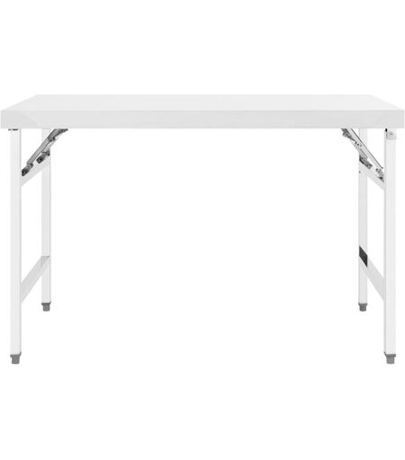 This foldable work table is perfect for food preparation and service and is ideal for a kitchen bar, restaurant, school, and other commercial space. This gastronomy worktable, made of stainless steel, is strong and stable for years. Its reinforced tabletop with high load capacity is ideal for placing kitchen tools, food and other essentials. The table is also easy to clean with a damp cloth. Thanks to its foldable design, this workbench can be set up and folded easily to save space when not in use. Dakota Fields Size: 80cm H x 120cm W x 60cm D ...