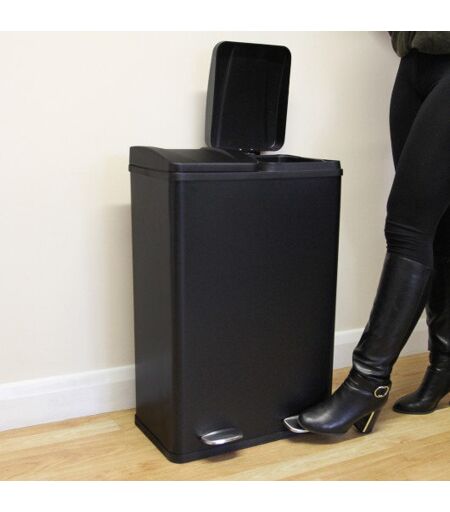 Rebrilliant Helsel Plastic 60 Litre Step on Multi Compartments Rubbish and Recycling Bin Black 60L