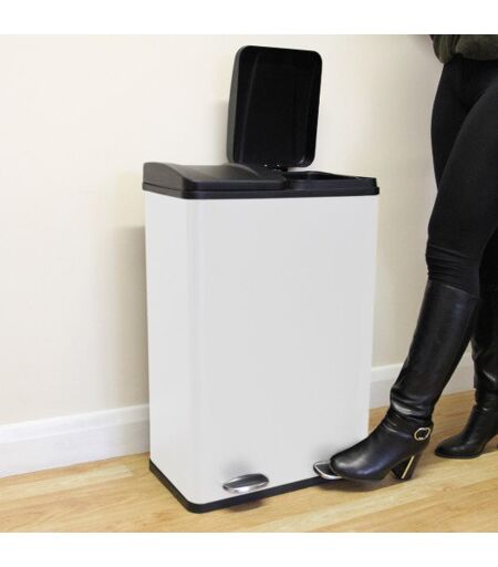 Rebrilliant Helsel Plastic 60 Litre Step on Multi Compartments Rubbish and Recycling Bin White/Black 60L