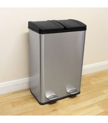 Rebrilliant Helsel Plastic 60 Litre Step on Multi Compartments Rubbish and Recycling Bin Silver/Black 60L