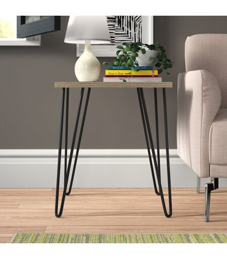 Hairpin legs and a two-tone colour palette give this side table its contemporary appeal, adding a dash of modern style to its surroundings. Available in a range of finishes to suit your existing décor, the table is ideal for displaying flowers, art, photos, and more - or keeping it clear for your morning cuppa! Assembly is required. Zipcode Design Table Top Colour: Rustic Oak ...