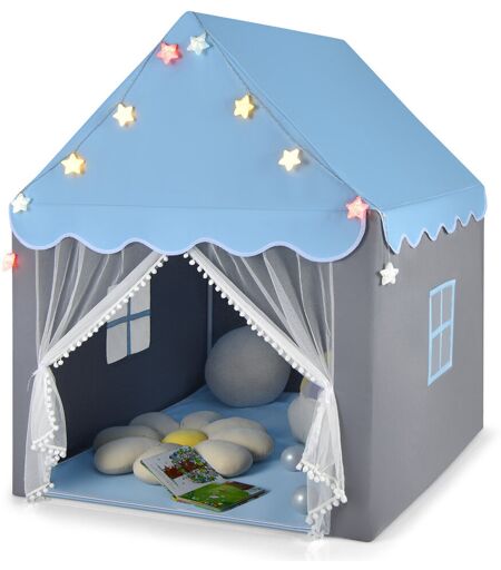 Zoomie Kids Kids Playhouse Tent W/ Washable Mat Star Lights Windows Bottom Zippers Large Indoor & Outdoor Castle Fairy Tent Blue 4