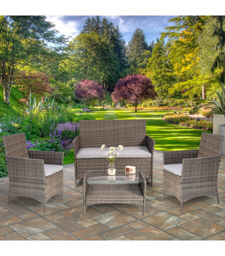 This Marlow Home Co. Sofa Set is made from Poly rattan which is low maintenance and easy to clean, simply use a damp wet cloth to wipe clean. Comes with instructions for self-assembly. The sofa, 2 chairs, and rectangular table are perfect for relaxing in your garden with the company.1 x deluxe rattan sofa (with cushions)2 x deluxe rattan chairs (with cushion)1 x deluxe rattan table with glass top weatherproof & UV light resistant rattan material steel FrameTempered safety glass requires assemblyCushions with removable covers please note: rattan cover does not come with this product and must be purchased separately. Marlow Home Co. ...
