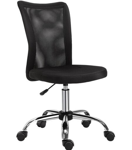 Keep comfortable whilst working all day with this desk chair. Ergonomic in design, it is fitted with thick foam to cushion and comfort your body whilst seated, with mesh on the back for your body to breathe. Slightly curved on the back for support as you lean back, the solid base is fitted with five wheels so you can move around easily and smoothly. With no arms, it will fit underneath your chair at any height, and its compact design is ideal for places with little room to spare. 17 Stories Upholstery Colour: Black ...