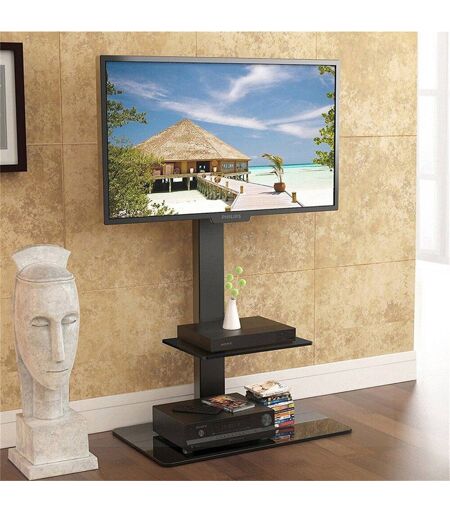 Symple Stuff Universal Swivel Floor TV Stand With Bracket For 32-65 Inch Plasma/LCD/LEDM, Height Adjustable Tall TV Stand With 2-Tier Shelves & HD Cable Black 65"