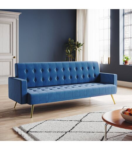 "Add the perfect blend of luxury and comfort to your living room with the Sunny brand Premium Plush Comfort Sofa Bed. Selected high-quality plush fabrics are soft and delicate to the touch, as smooth as silk, bringing you the ultimate comfort. The unique design concept makes the sofa bed a highlight of the home space, both practical and artistic. Fairmont Park Fabric: Blue Fireproof Sponge ...