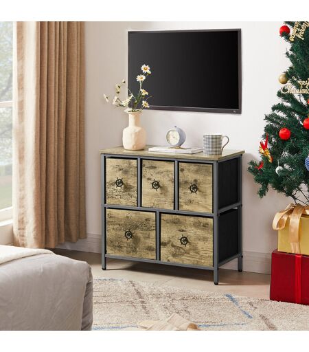 This medium-sized 5-drawer dresser is stylish and sturdy with roomy storage. Two colors are available for you to choose, allowing you to choose the dressing table that suits you. The spacious top is the ideal place to display plants, vases, picture frames, decorations and more. Our industrial drawer dresser is sure to be a great addition to any bedroom, hallway, or closet. Say goodbye to chaos now! Borough Wharf Colour: Grey ...