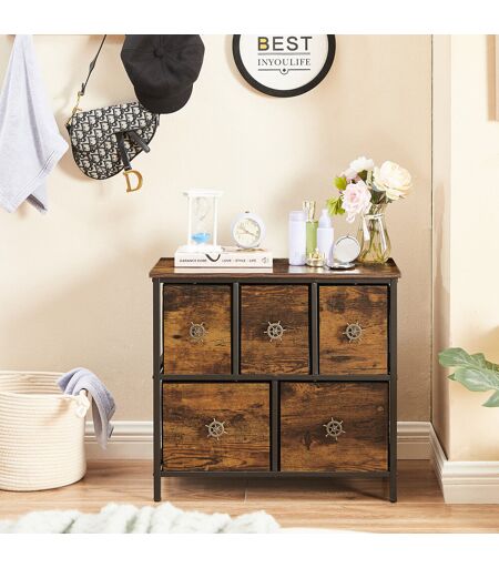 This medium-sized 5-drawer dresser is stylish and sturdy with roomy storage. Two colors are available for you to choose, allowing you to choose the dressing table that suits you. The spacious top is the ideal place to display plants, vases, picture frames, decorations and more. Our industrial drawer dresser is sure to be a great addition to any bedroom, hallway, or closet. Say goodbye to chaos now! Borough Wharf Colour: Brown ...