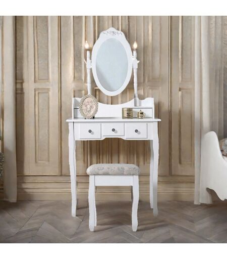Borough Wharf Darmstadt Dressing Table with Mirror & Stool Bedroom Dresser White Makeup Desk Bedroom Furniture White 145cm H X 75cm W X 40cm D