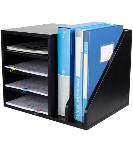 Ebern Designs Wood Desktop 4 Tier A4 In Tray Office Desk Tidy File Holder Paper Organiser Magazine Storage Filing Rack,Brown Black 76.2cm H X 99.06cm W X 78.49cm D