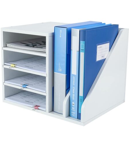 Ebern Designs Wood Desktop 4 Tier A4 In Tray Office Desk Tidy File Holder Paper Organiser Magazine Storage Filing Rack,Brown White 76.2cm H X 99.06cm W X 78.49cm D