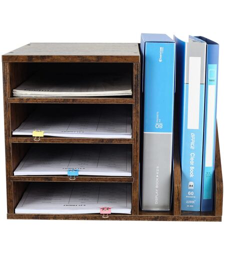 Ebern Designs Wood Desktop 4 Tier A4 In Tray Office Desk Tidy File Holder Paper Organiser Magazine Storage Filing Rack,Brown Brown 30cm H X 39cm W X 30.9cm D
