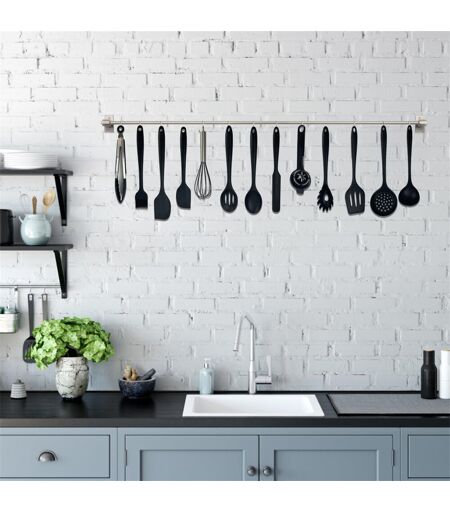 Belfry Kitchen Nonstick Kitchen Utensils Set - Silicone Kitchen Cookware Gadgets With Holder - Spoon Holder - Heat Resistant - Dishwasher Safe - BPA Free - 38 Pieces Black 13.7cm L