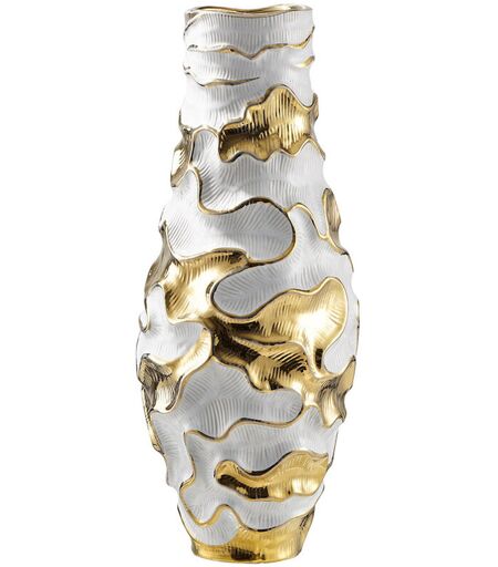 Fairmont Park Adyson Handmade Ceramic Vase for Living Room, Textured Ripples Design Modern Home Decoration White/Gold 43cm H x 17cm W x 17cm D