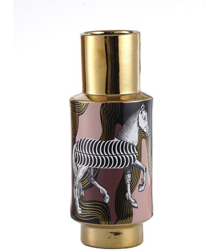 Fairmont Park Adra Handmade Gold Ceramic Vase for Living Room Decor, Zebra Print Design Modern Home Decoration Gold 39.5cm H x 16cm W x 16cm D