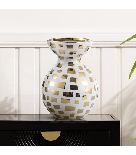 Fairmont Park Agrippina Handmade White & Gold Decorative Ceramic Vase for Living Room Modern Home Decoration Accent Piece White;Gold 31.5cm H x 21.5cm W x 21.5cm D